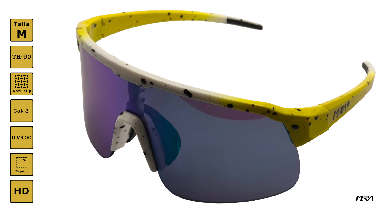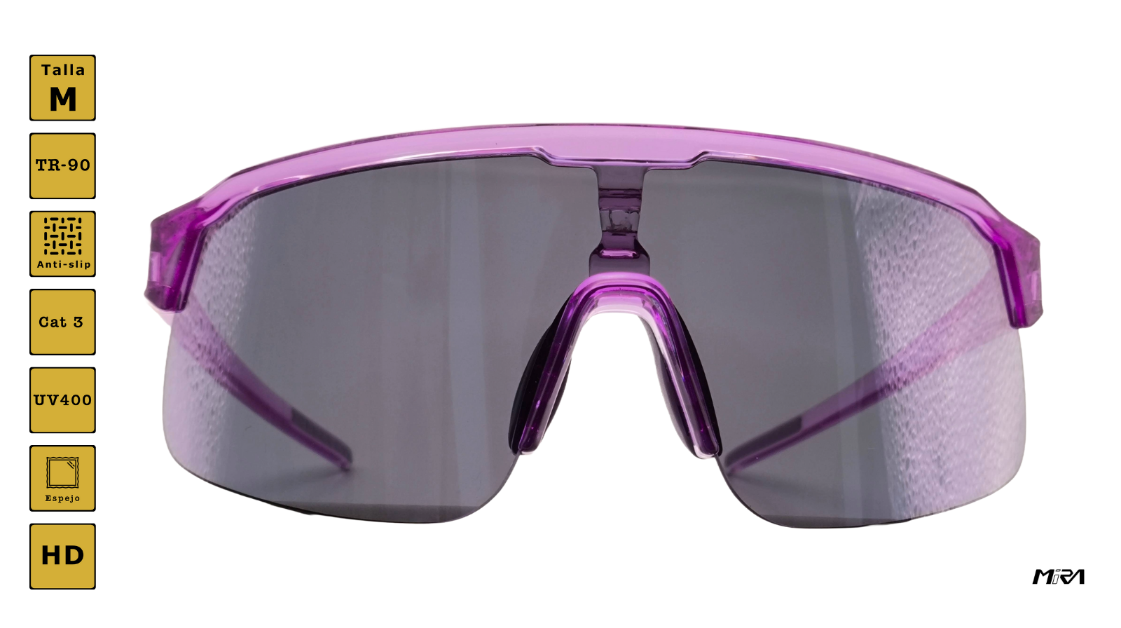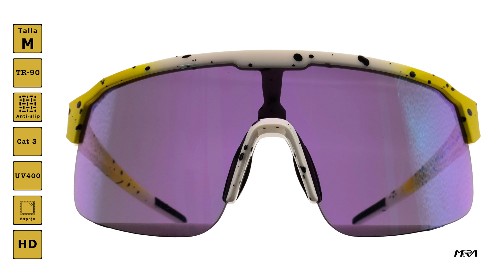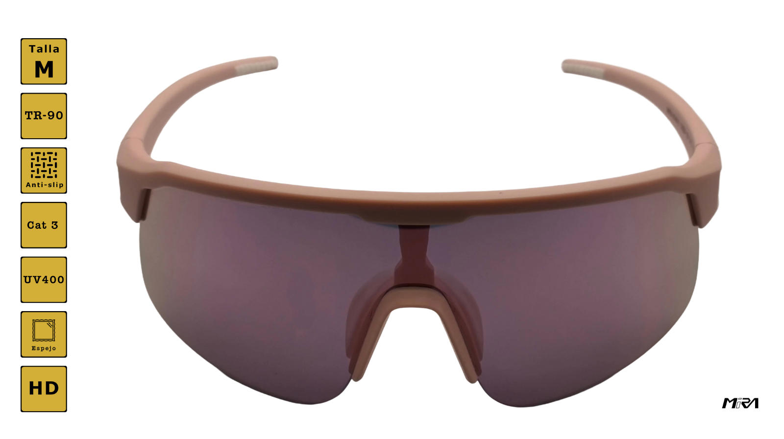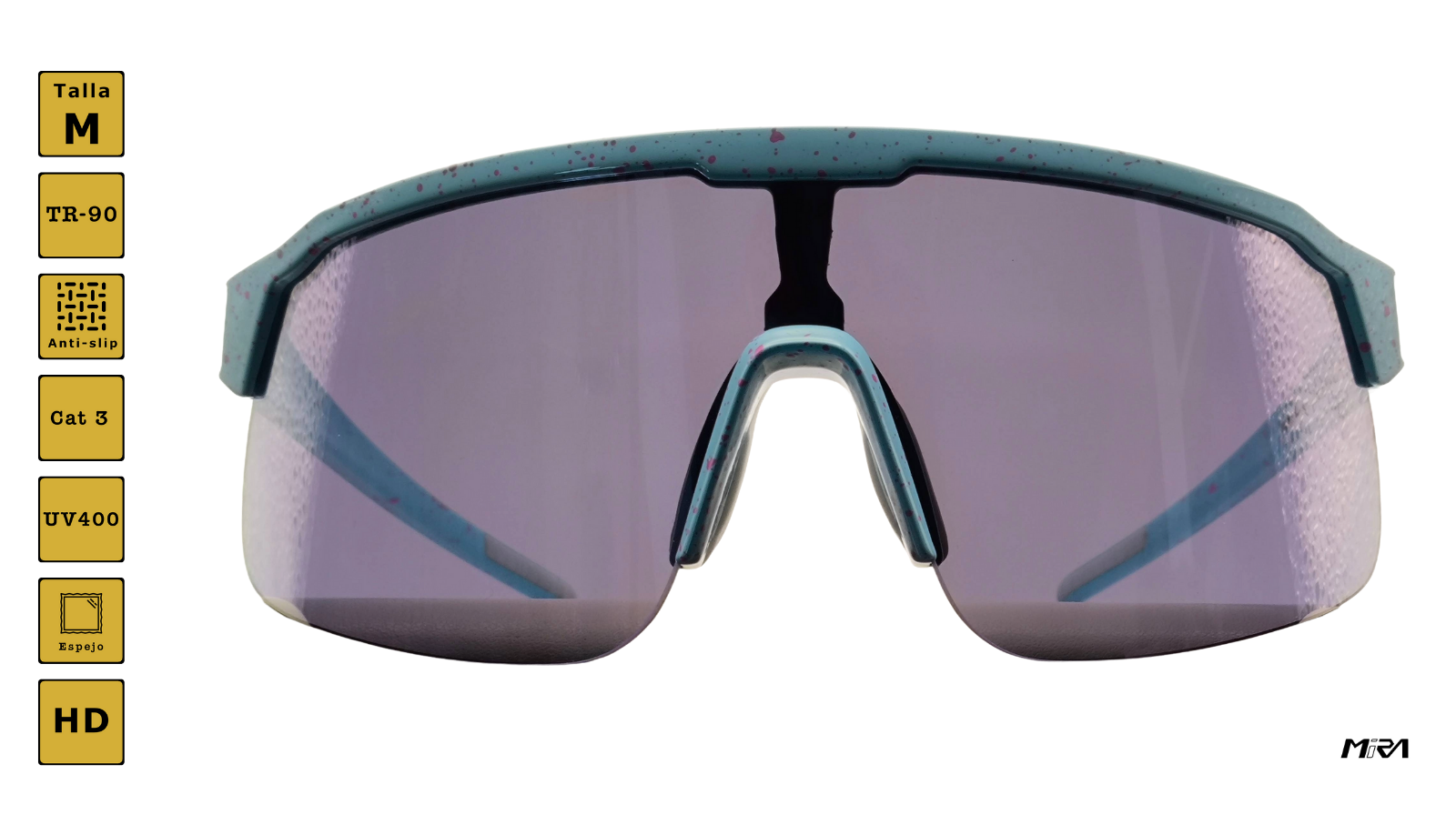 - Diseño cómodo con presencia de silicona en las varillas y puente nasal, evitando que las gafas se tambaleen durante la actividad deportiva.
