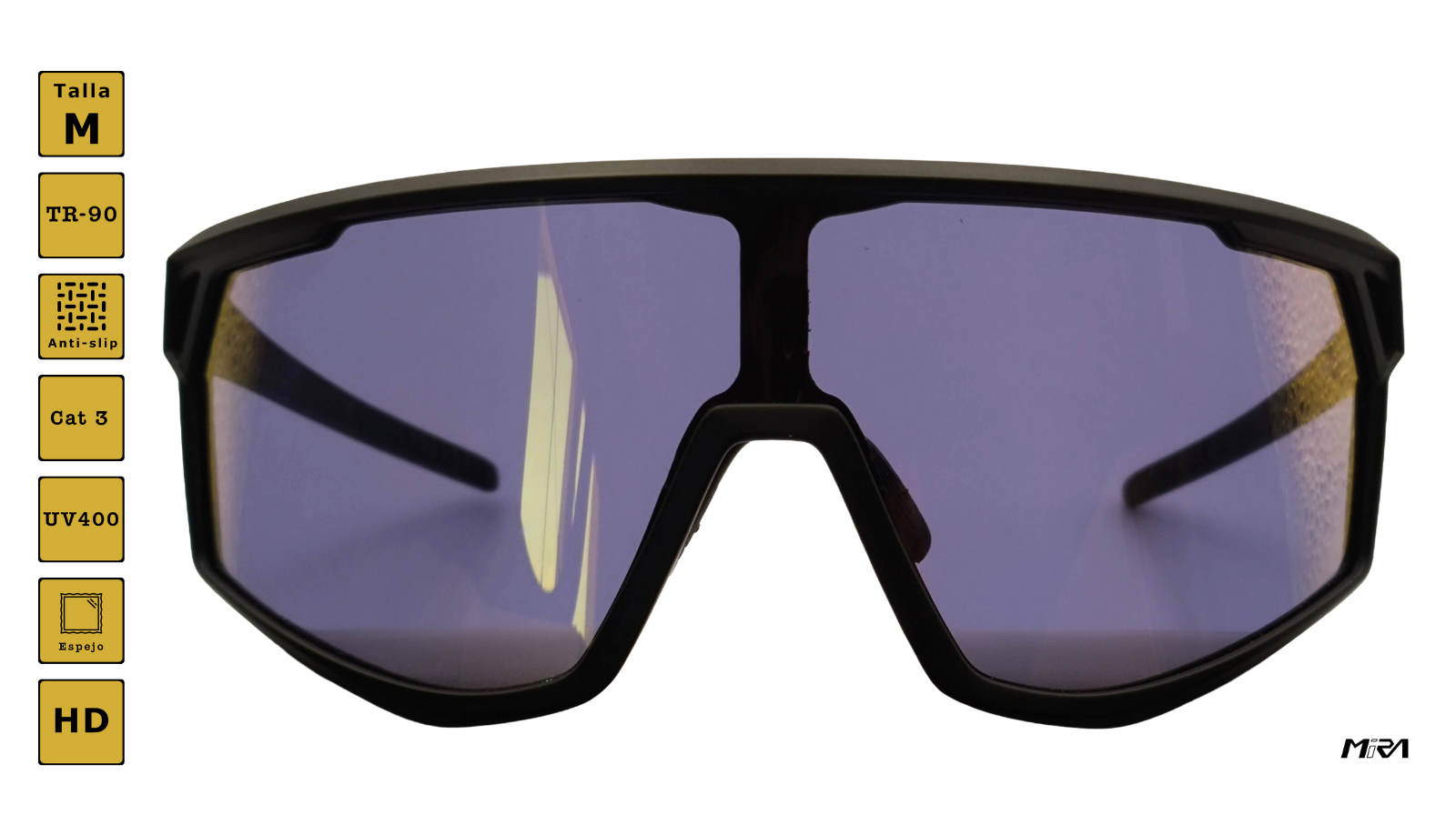 - Diseño cómodo con presencia de silicona en las varillas y puente nasal, evitando que las gafas se tambaleen durante la actividad deportiva.