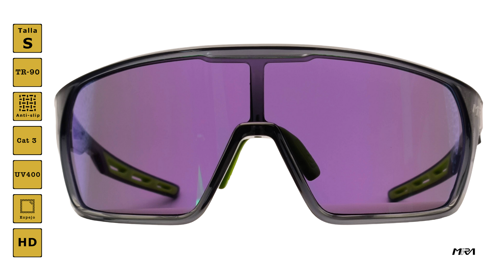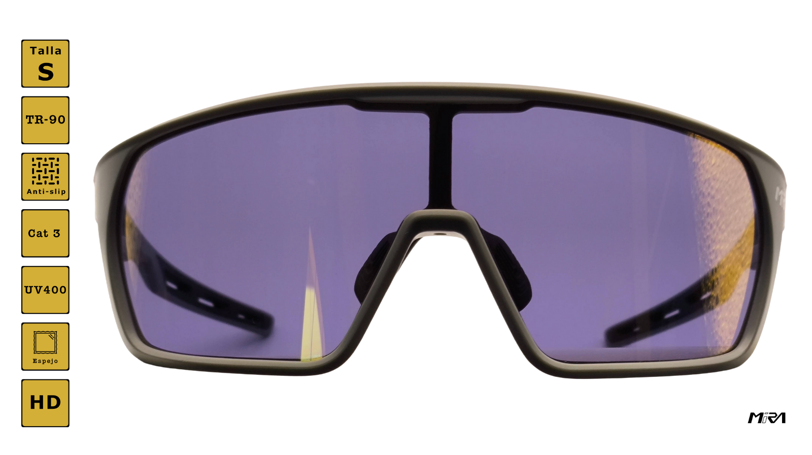 - Diseño cómodo con presencia de silicona en las varillas y puente nasal, evitando que las gafas se tambaleen durante la actividad deportiva.