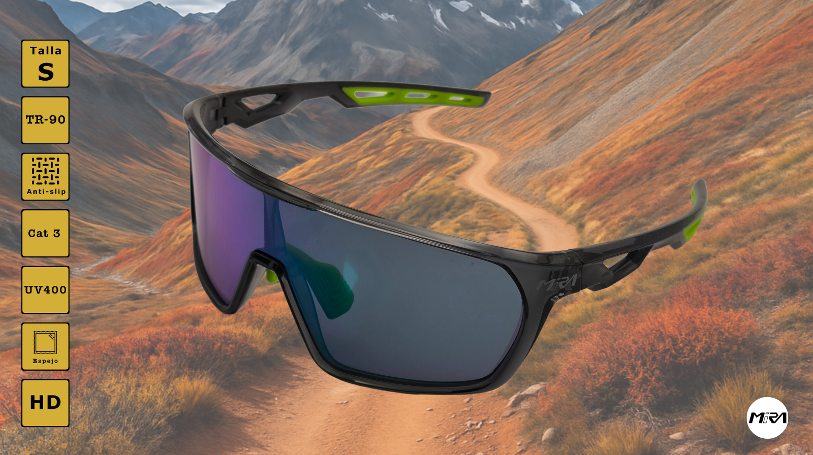 - UV400, cat 3 y espejo para una protección óptima en días soleados.